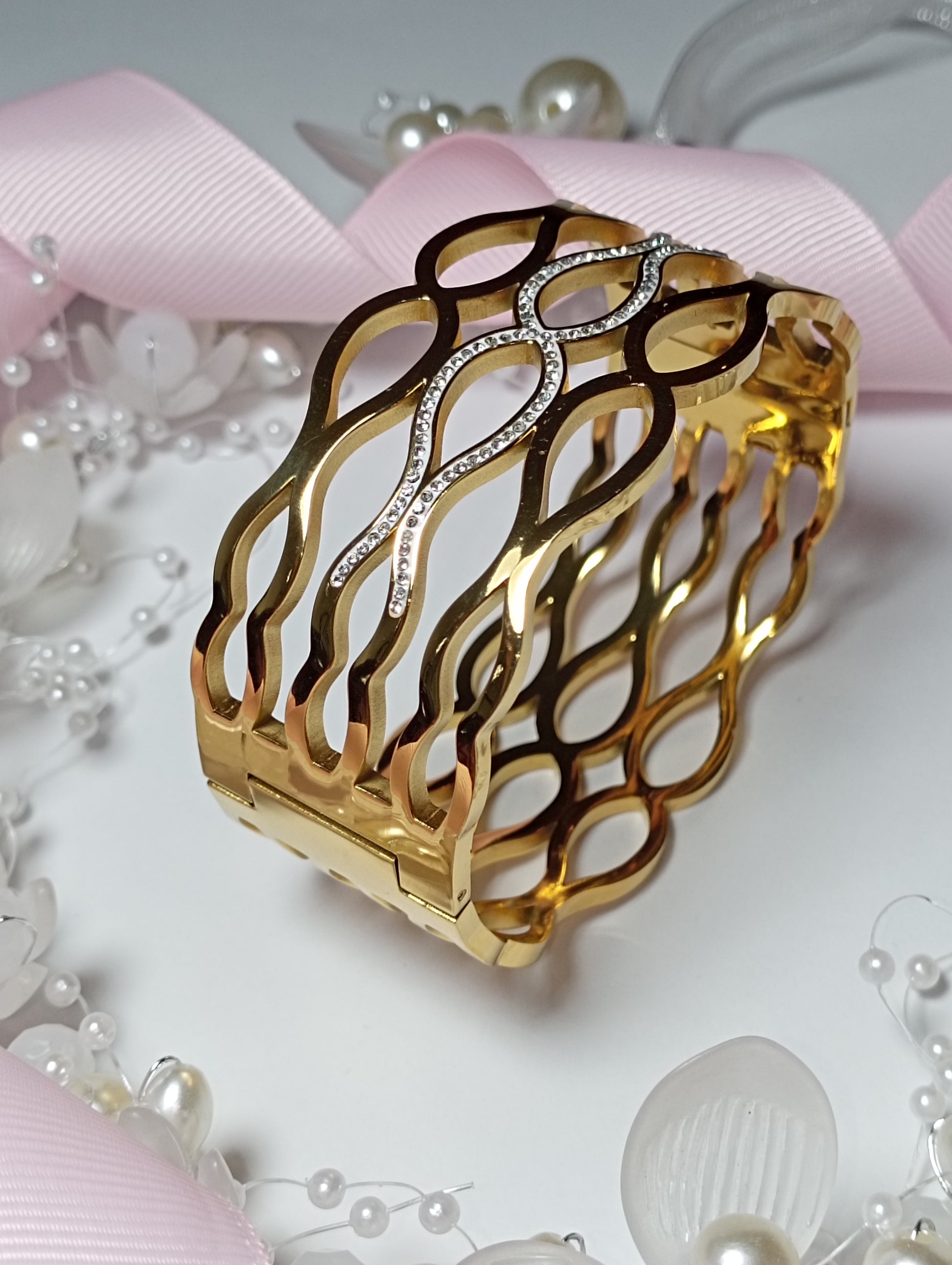 Brazalete dorado con Diseño ondulado y Detalles brillantes